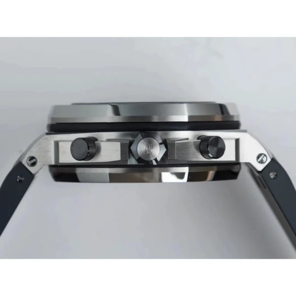 The black rubber strap is equipped with the signature AP titanium clasp – a detail that highlights the flawless engineering behind this timepiece. It’s lightweight, waterproof, and molded for a secure, comfortable fit, whether you’re in the boardroom or on the open road.