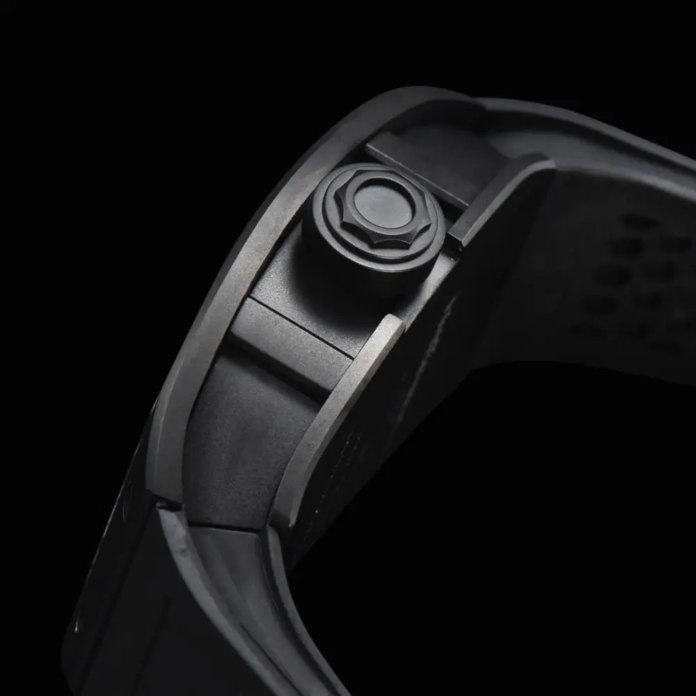 The Total Integration: The high-grade black FKM rubber strap flows from the case as a single, continuous entity. From lug to buckle, it is one cohesive, ergonomic shadow, engineered not just to be worn, but to be forgotten—until you choose to remember it.