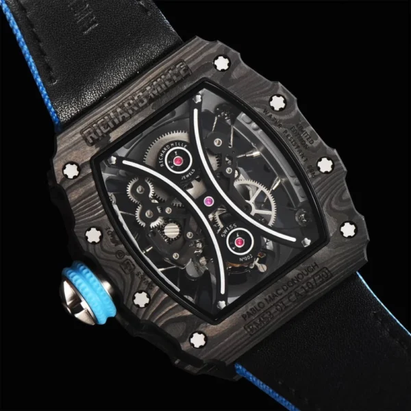 • The Skeletonised Monocoque: The case is a unified, architectural structure, inspired by the stripped-down chassis of the original. Every surface is machined, hollowed, and skeletonised not for decoration, but for a higher principle: strength without mass. The result is a startling wrist-feel—secure and substantive, yet barely-there.