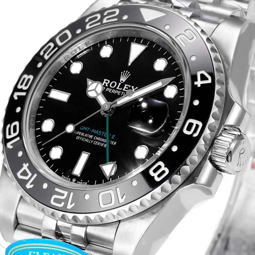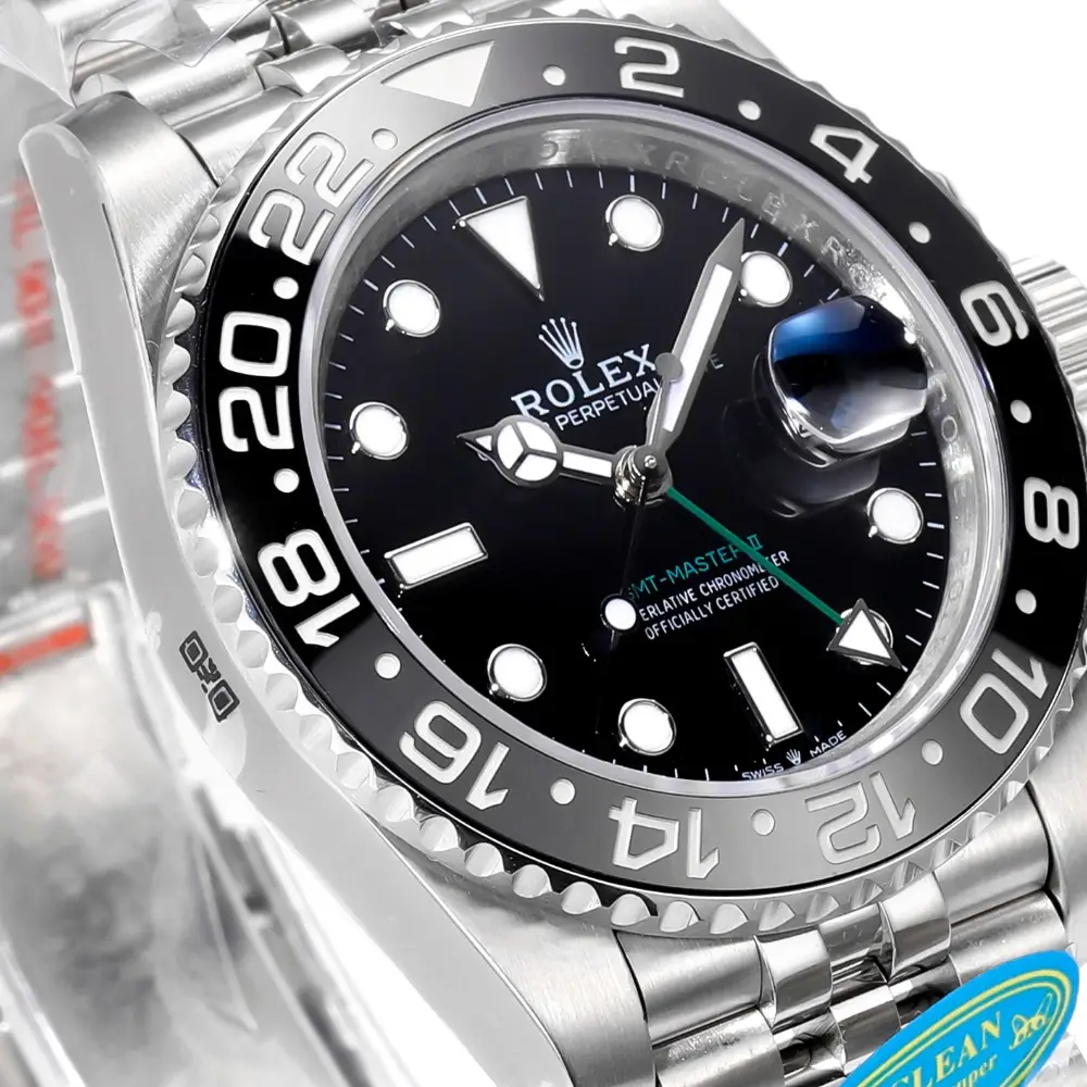 This GMT Master II–style timepiece is built for those who want a clean, unmistakably premium look without overstatement. The black dial keeps things sharp and versatile, while the dual-time GMT function adds real-world practicality for travel, business, or simply staying connected across time zones.