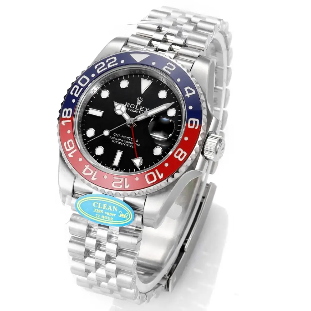 The red/blue ceramic bezel is unmistakable. It signals heritage, travel, and confidence the moment it hits the wrist.